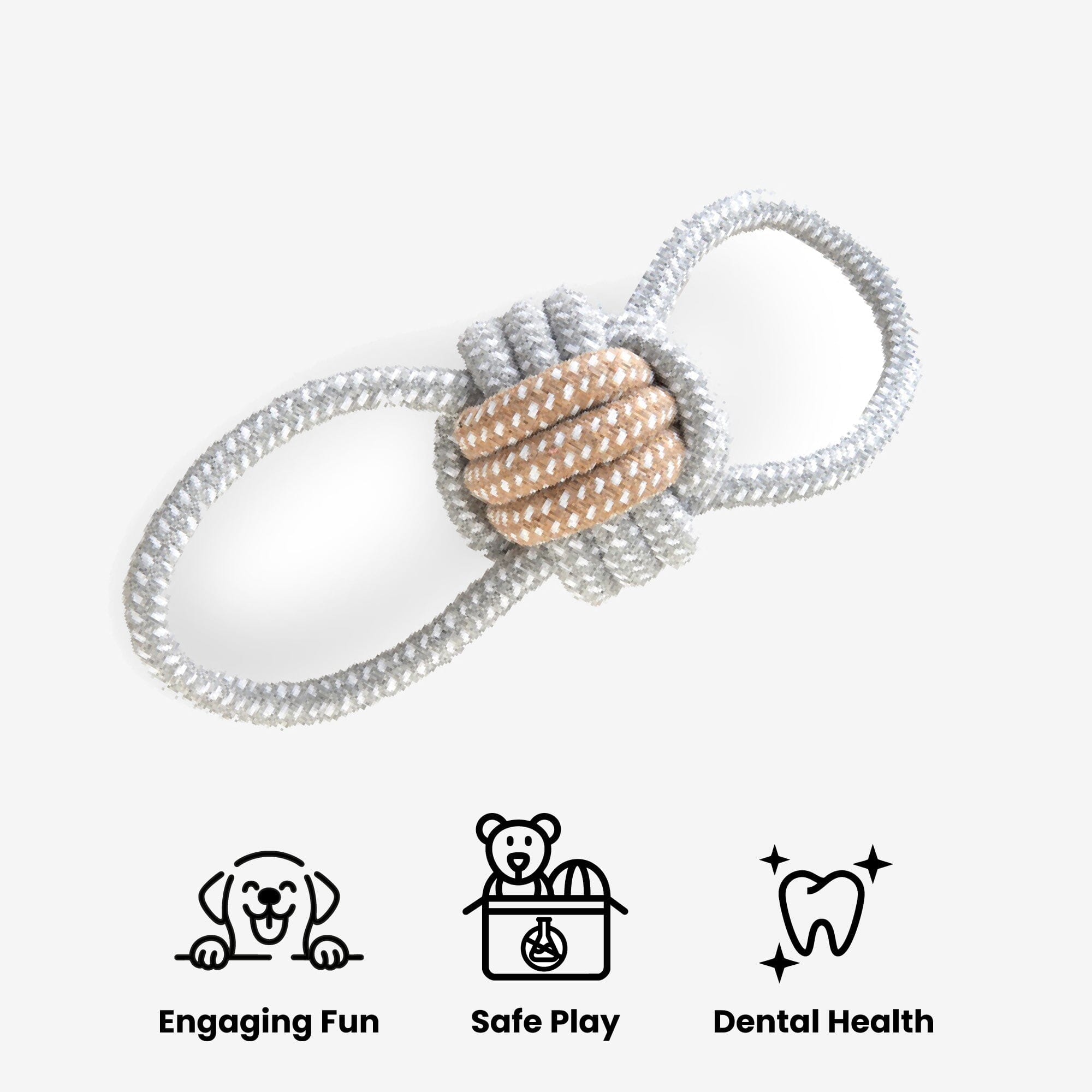 The Nandog Rope Toy is designed for dogs who love to tug, chew, and stay active. Crafted with tightly braided, durable fibers, this toy withstands interactive play while helping support dental health by gently cleaning teeth and massaging gums. Perfect for tug-of-war, fetch, or solo chewing sessions, it provides both physical exercise and mental stimulation. The strong yet pet-safe construction makes it ideal for daily play, encouraging bonding moments between dogs and their owners. Whether indoors or outdoors, the Nandog Rope Toy delivers long-lasting entertainment and helps redirect natural chewing instincts into healthy, engaging activity.